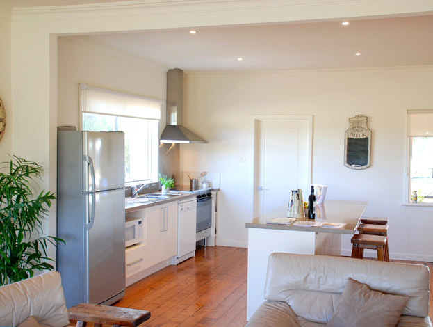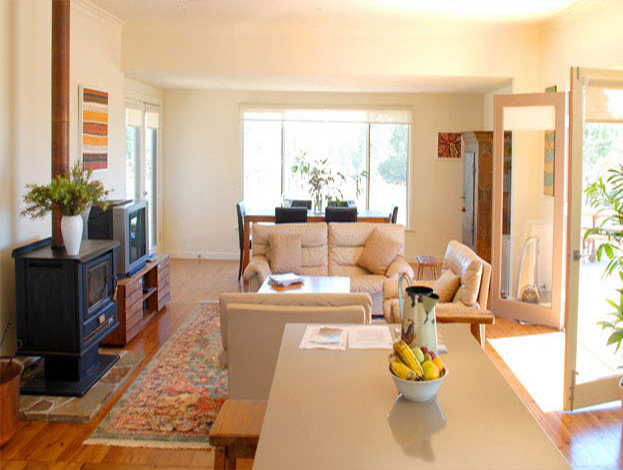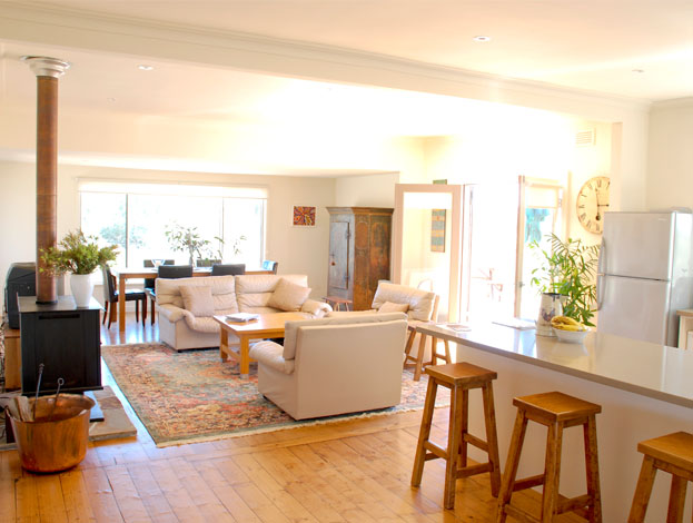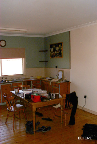 The scope of works involved the complete restoration and renovation of a run down farmhouse. The project involved major work from the foundations to the roof line structure. Internal walls were removed to create an open plan design, French doors added throughout to bring the outside in and to take advantage of spectacular countryside views from every angle.The 'back' of the house was opened and a large deck built to turn the house around to look across to the spectacular Mt Alexander ranges.