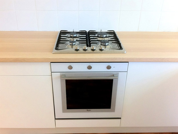 of a dishwasher, new gas piping for instant hot water unit,