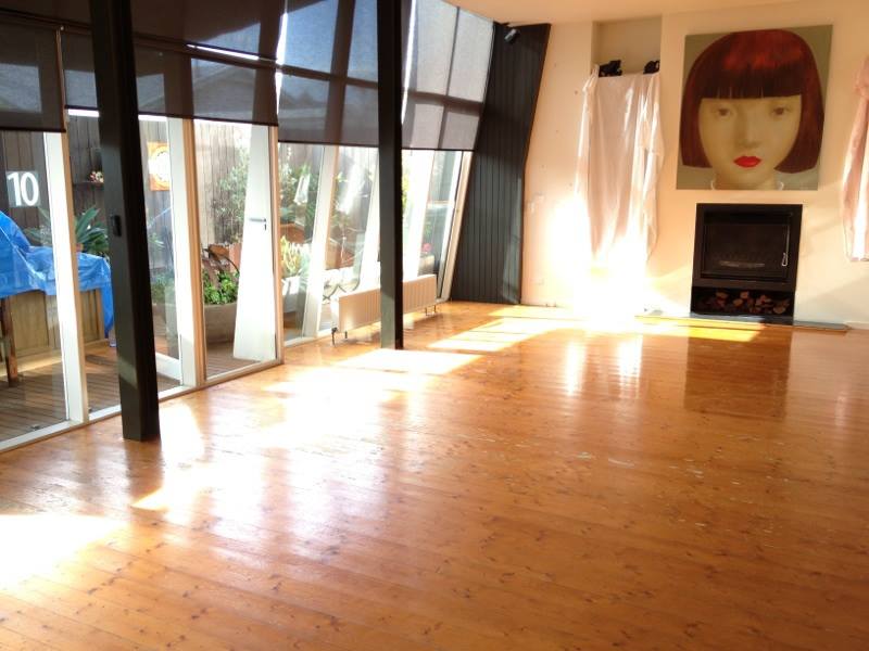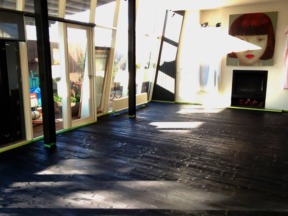 The clients wanted to repair and update old baltic pine flooring to the ultra cool and modern Black Japan finish.